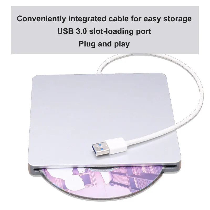 The integrated cable makes it easy to store. It features a USB 3.0 slot-loading design and an external Blu-ray combo drive. Supports 4K high-definition playback and 3D. Driver-free installation; plug and play.